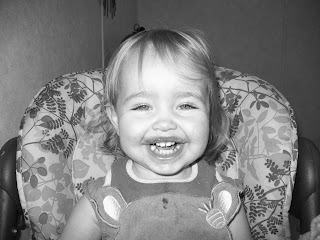 Last night I was sewing with a friend and Corey was watching Noelle. They had some show on and a Cutie (mini-oranges) commercial came on. Noelle loves Cuties. Once the commercial ended she walked to her high chair and got in expecting Dad to get her a snack. Corey took her out (it was nearly bed time). Then she walked to her room, got a bib, came back out saying "bibby bibby" and sat in her chair. We'll just say she got her Cutie. Who could say no? :)